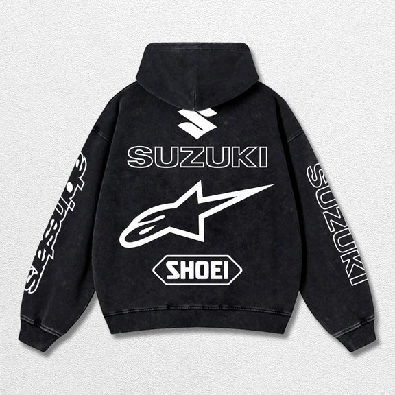Retro Alpinestars Suzuki Racing Washed Hoodie MotoGP World Champion Enthusiast Apparel Streetwear Racing Team Super Motorsports Clothing Riders Motocross Off-Road Dirt Bike Fan Gear Cotton For Moto Fan