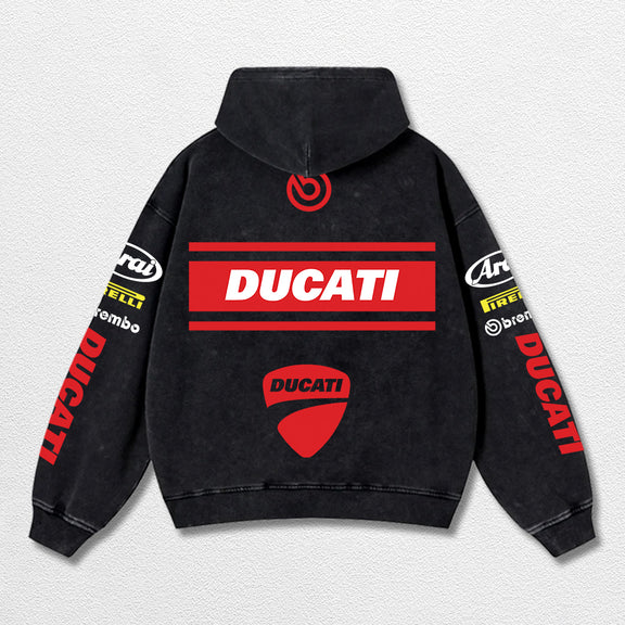Retro Brembo Ducati Racing Washed Hoodie MotoGP World Champion Enthusiast Apparel Streetwear Racing Team Super Motorsports Clothing Riders Motocross Off-Road Dirt Bike Fan Gear Cotton For Moto Fan