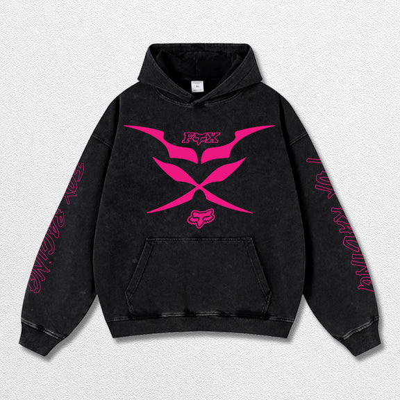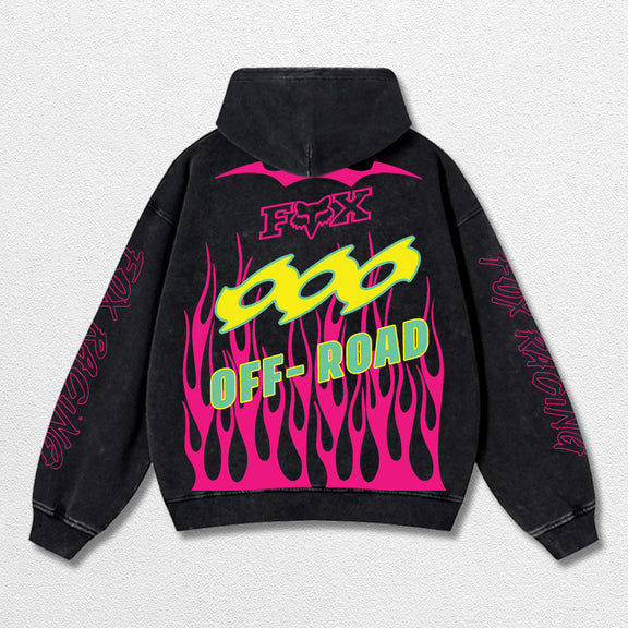 Retro Fox Racing Off Road Washed Hoodie MotoGP World Champion Enthusiast Apparel Streetwear Racing Team Super Motorsports Clothing Riders Motocross Off-Road Dirt Bike Fan Gear Cotton For Moto Fan