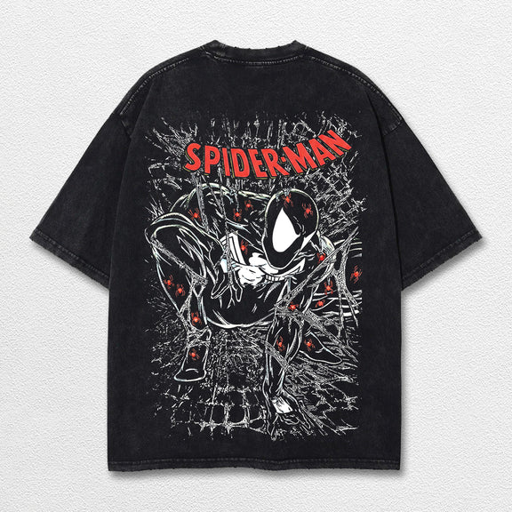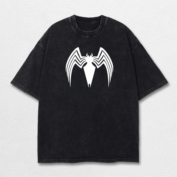 Spider Man Venom Hero Comic Double Printed Oversize Lightweight Acid Washed Tee, Character Marrvel Comics TV Series Graphic Design Unisex Top Cotton Streetwear T-Shirt Clothes Menswear