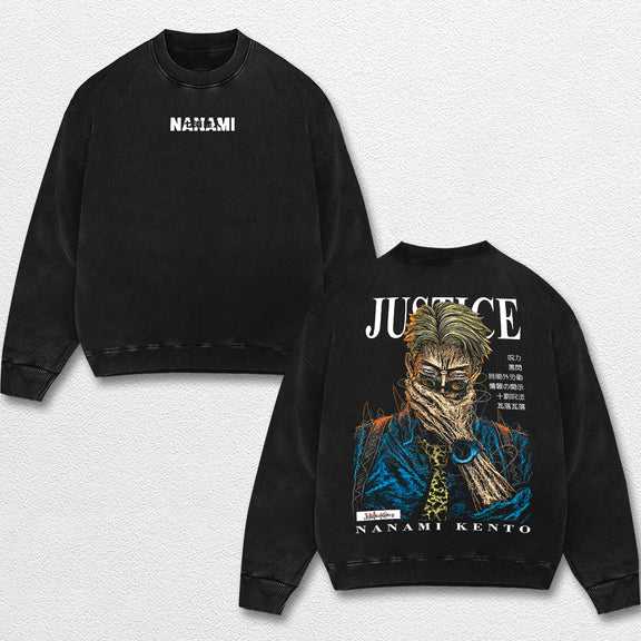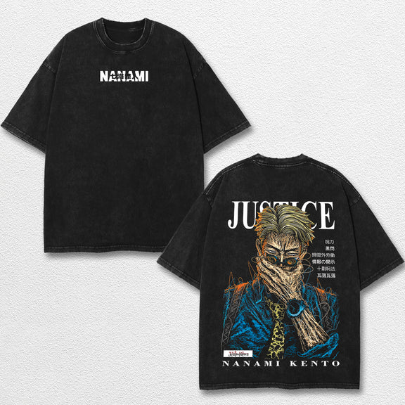 Retro Kento Nanami - Jujutsu Kaisen Oversize Lightweight Acid Washed Hoodie Sweatshirt Tee, Anime Graphic Design Unisex Top Cotton Streetwear Shirt Clothes