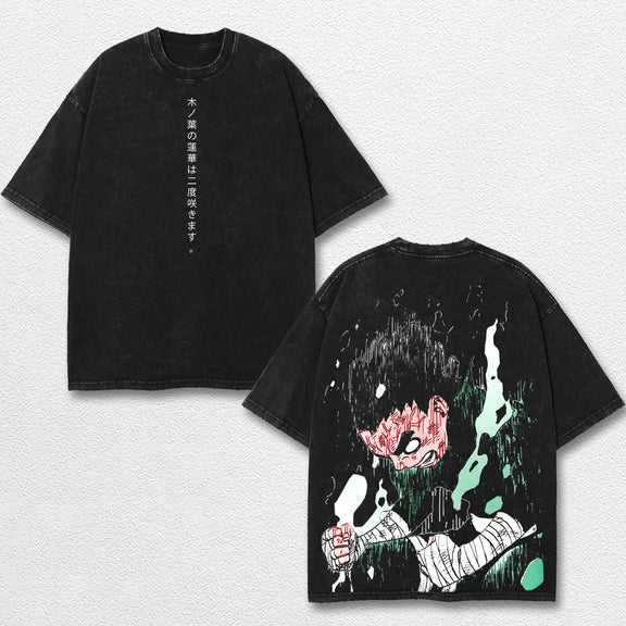 Retro Rock Lee - Naruto Oversize Lightweight Acid Washed Hoodie Sweatshirt Tee, Anime Graphic Design Unisex Top Cotton Streetwear Shirt Clothes